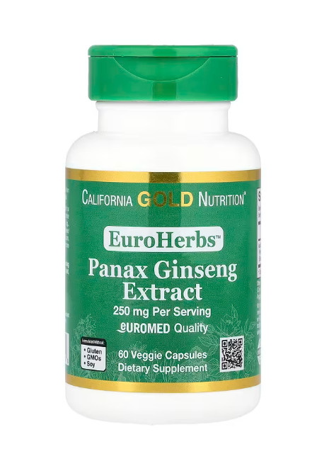 California Gold Nutrition, EuroHerbs™, Panax Ginseng Extract, Euromed Quality, Женьшень 250 мг, 60 капсул