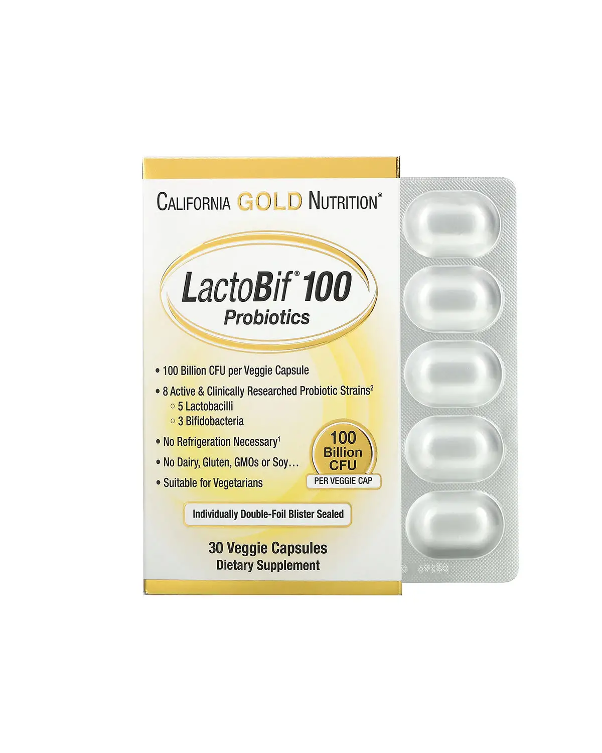 California Gold Nutrition, LactoBif® 100 Probiotics, Պրոբիոտիկ 100 Billion CFU, 30 պատիճ
